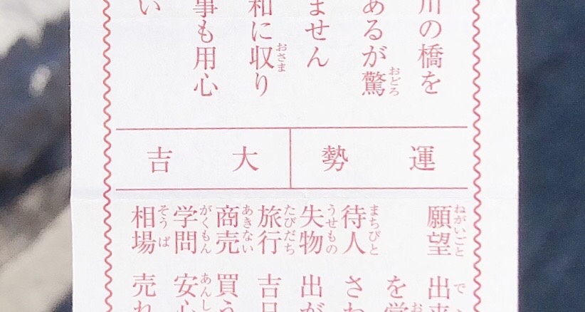 皆さま、年末年始はどのように過ごされましたか?私は去年最後に引いたおみくじが人生初の凶だったので、初詣でおみくじリベンジしました。