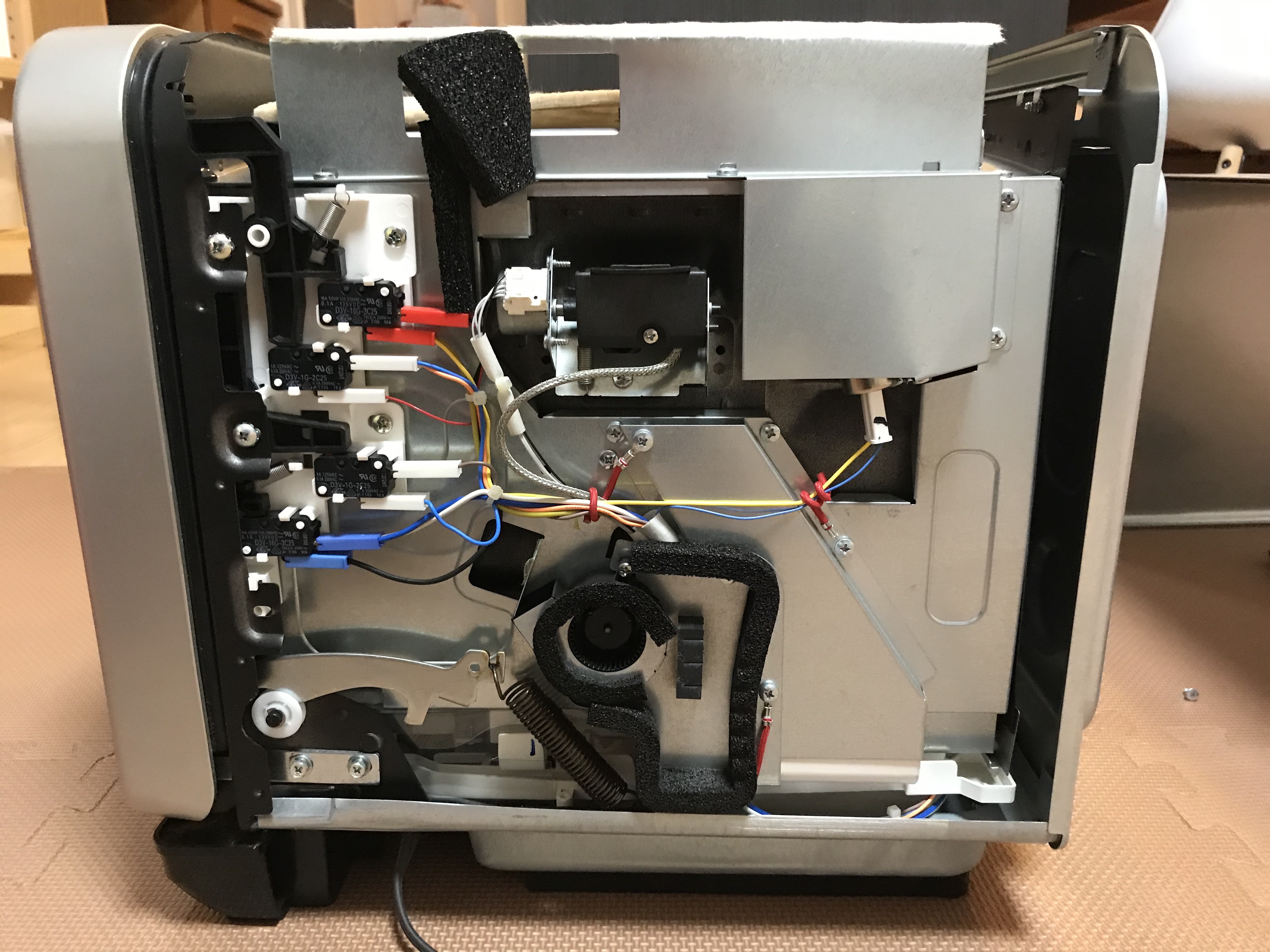 写真は家にある電子レンジが作動中に突然止まるという症状が増えてきたので、「後回しにせず」分解した時の様子です。