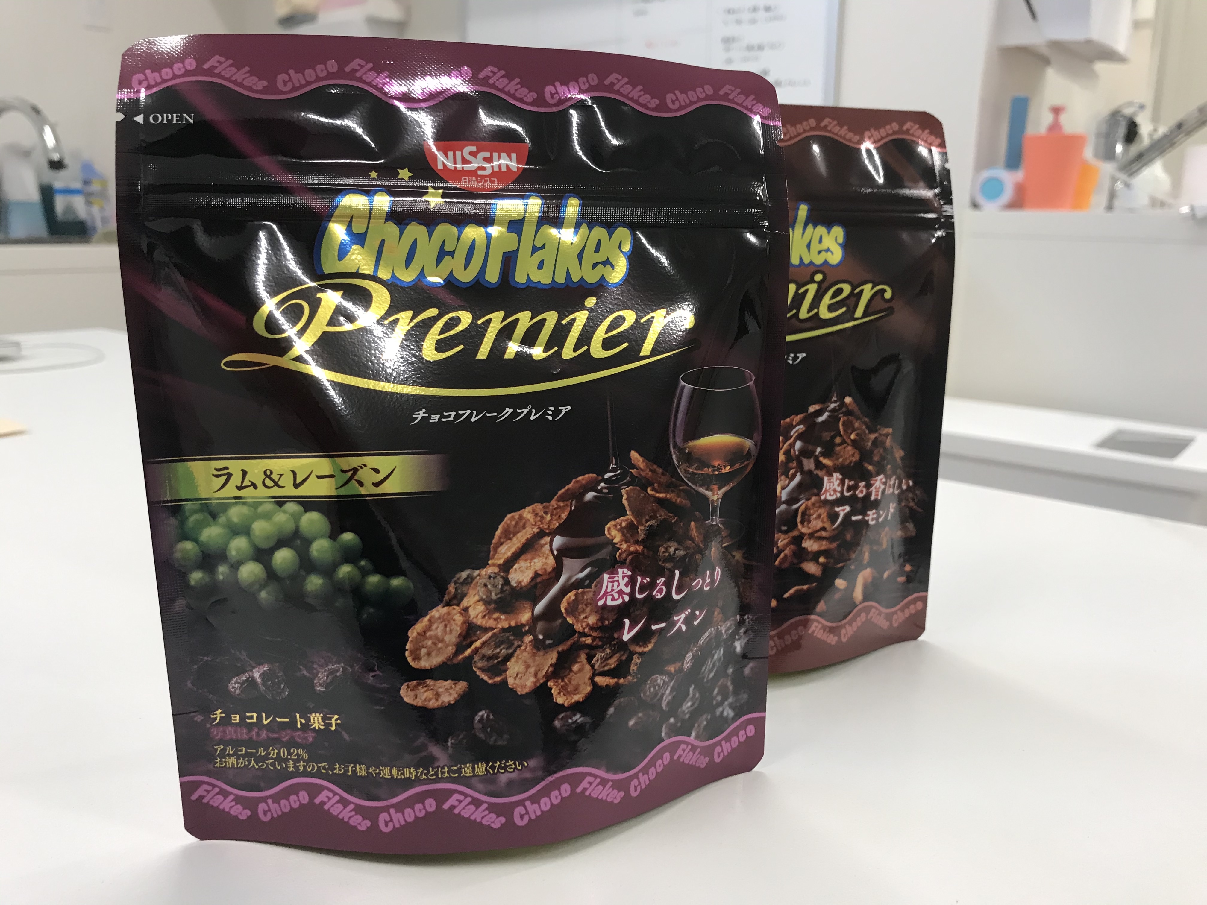 写真はこの間、患者様からいただいたレーズン入りのチョコレート菓子です。