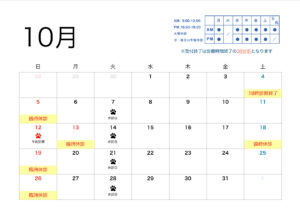 10月の診療時間のお知らせです。