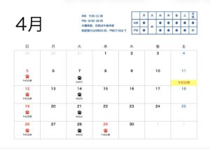 4月の診療時間のお知らせ